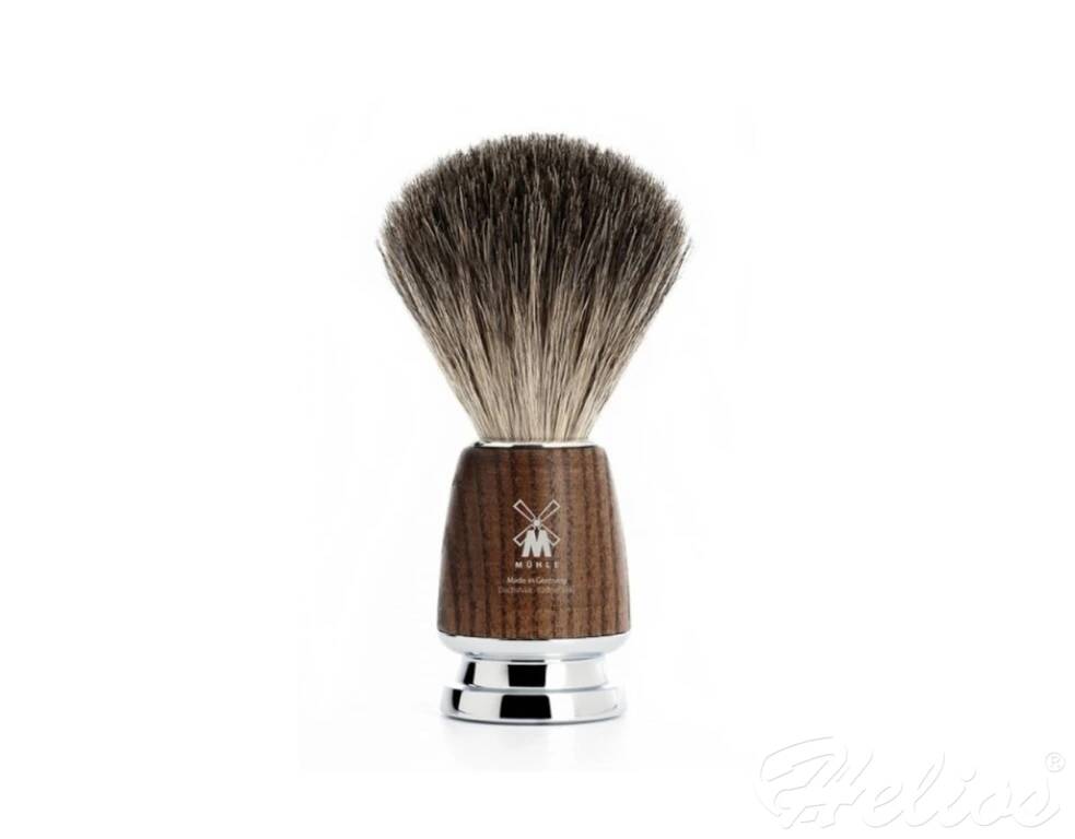Materiał: mosiądz chromowany, drewno jesionu, naturalne włosie z borsuka