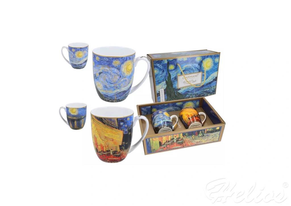 Zestaw dwóch eleganckich kubków z motywem twórczości Vincenta van Gogha. Zapakowane w nietypowe opakowanie, świetnie nadaje się na prezent.