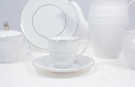 komplet filiżanek dla 6 osób: filiżanki, talerzyki, imbryk, cukiernica, dzbanuszek Ćmielów 3607 SOFIA / Platyna